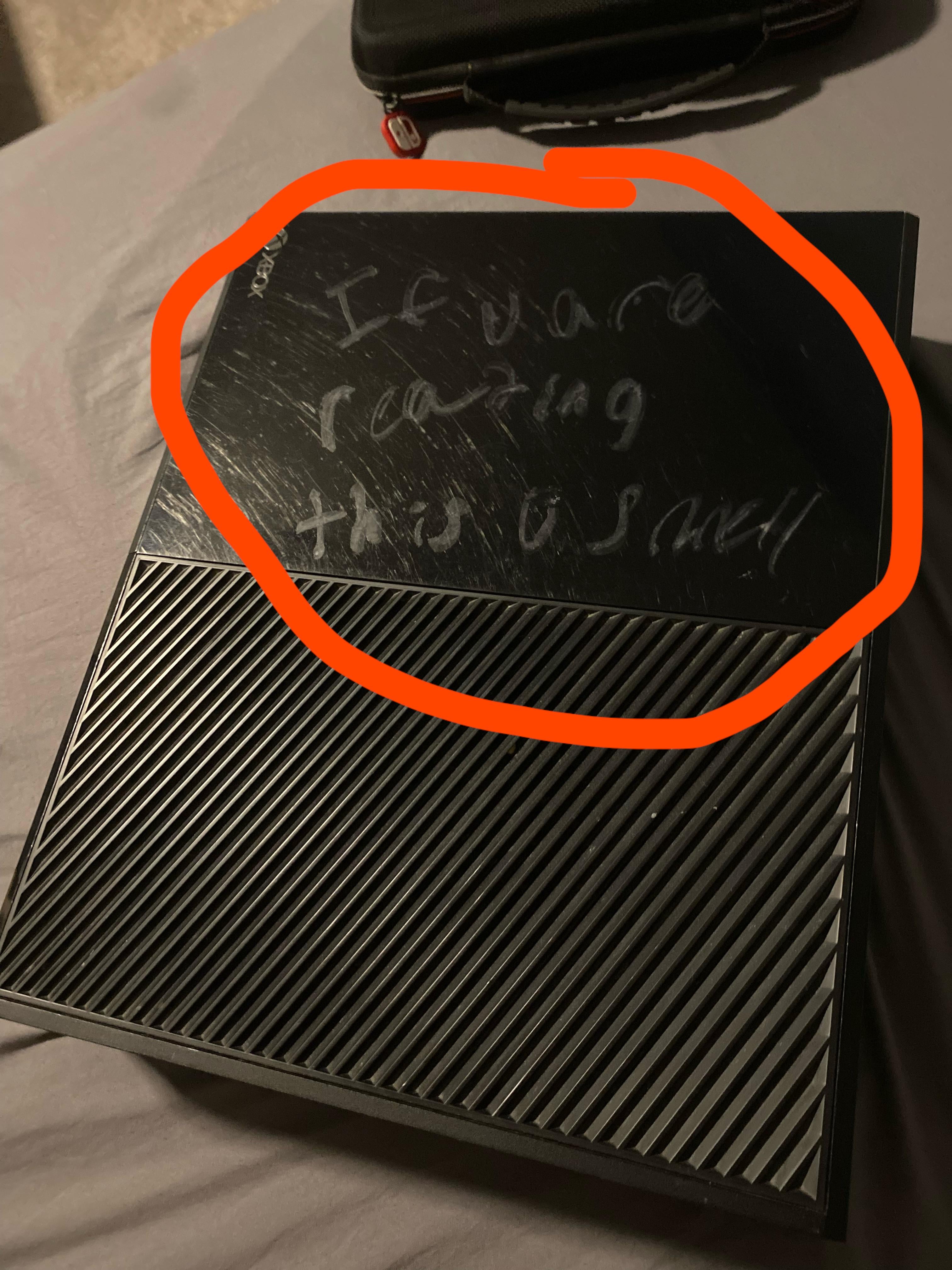 Tbh I don’t even remember why and when I put this on here, I pretty sure it was like 7 years ago when I was a kid but it ain’t coming off with anything. I believe I wrote this on here with a glue stick but now I’m feeling like it engraved it self own there now.