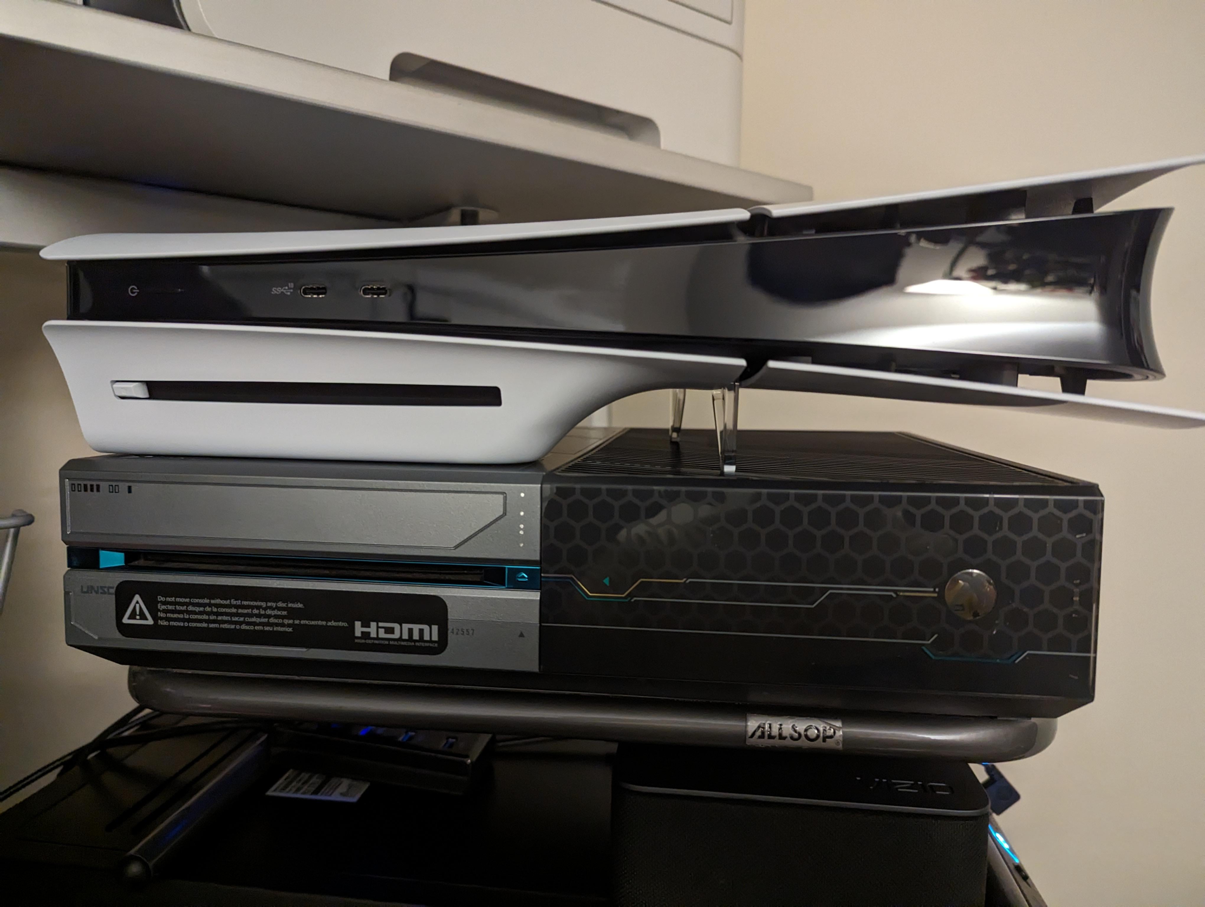 I was doing some rearranging of my consoles and realized with the PS5’s weird shape it is actually perfect for stacking on top of an Xbox One as the vents won’t be obstructed.