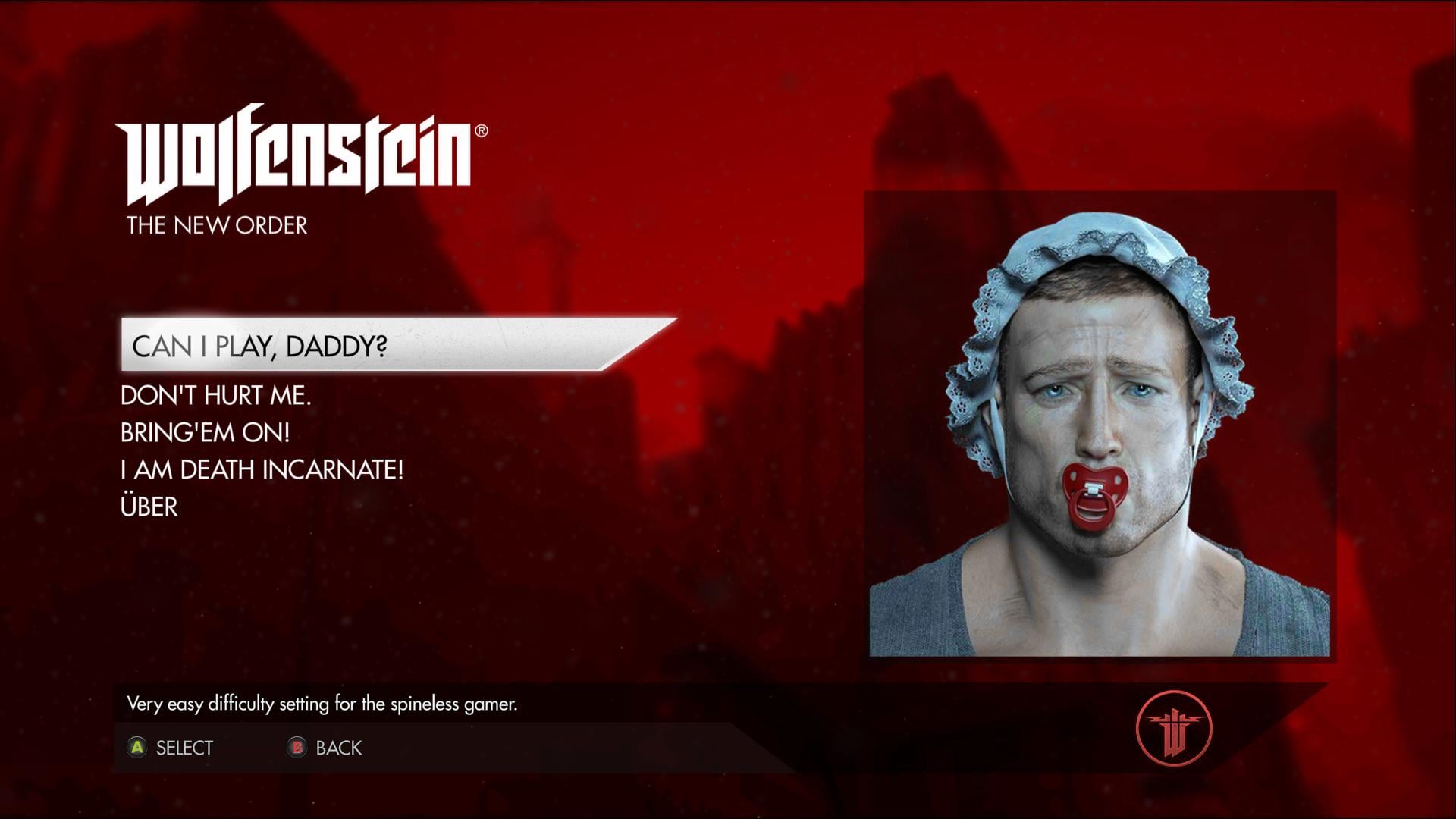 Share Facebook Twitter LinkedIn Pinterest Bluesky Threads So who chose this difficulty setting? (Wolfenstein new order)