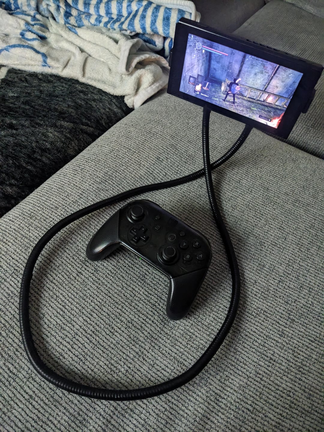 I’ve had this thing for years that I used to use on bus/plane rides. Now, I use it at home for playing switch on the couch. I don’t have to hold it up when I’m laying down, or crane my neck when I’m sitting up.