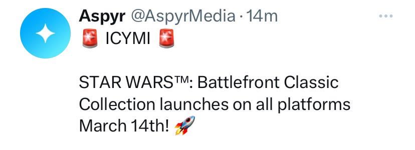 Share Facebook Twitter LinkedIn Pinterest Bluesky Threads Revealed on the Nintendo Direct today were a few games that also are coming to xbox. For me the most notable was Battlefront 1 & 2