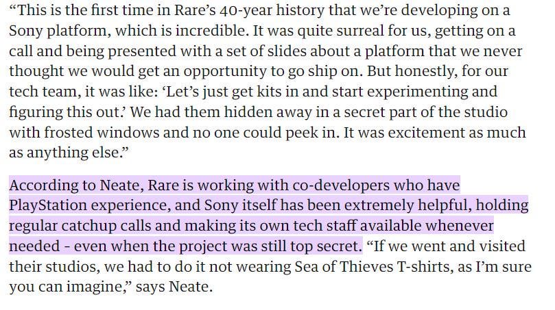Sea Of Thieves Executive Producer Says Sony Worked Closely With Rare To Provide Tech Support And Keep The Game Going Multiplatform A Secret They Didn’t Allow To Leak