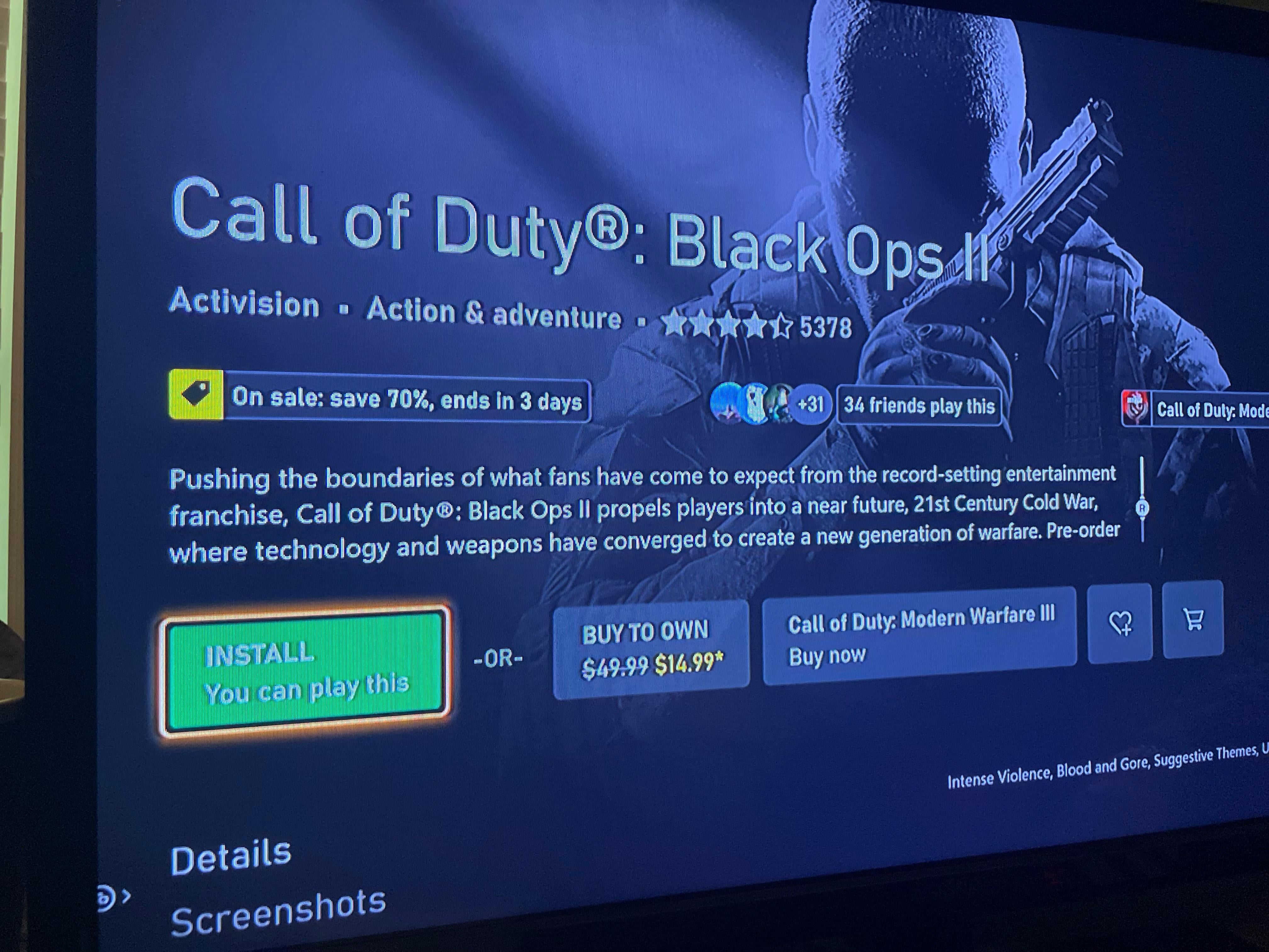 I dont have black ops 2 in my owned games – but it’s telling me “install you can play this” or “buy to own” it.