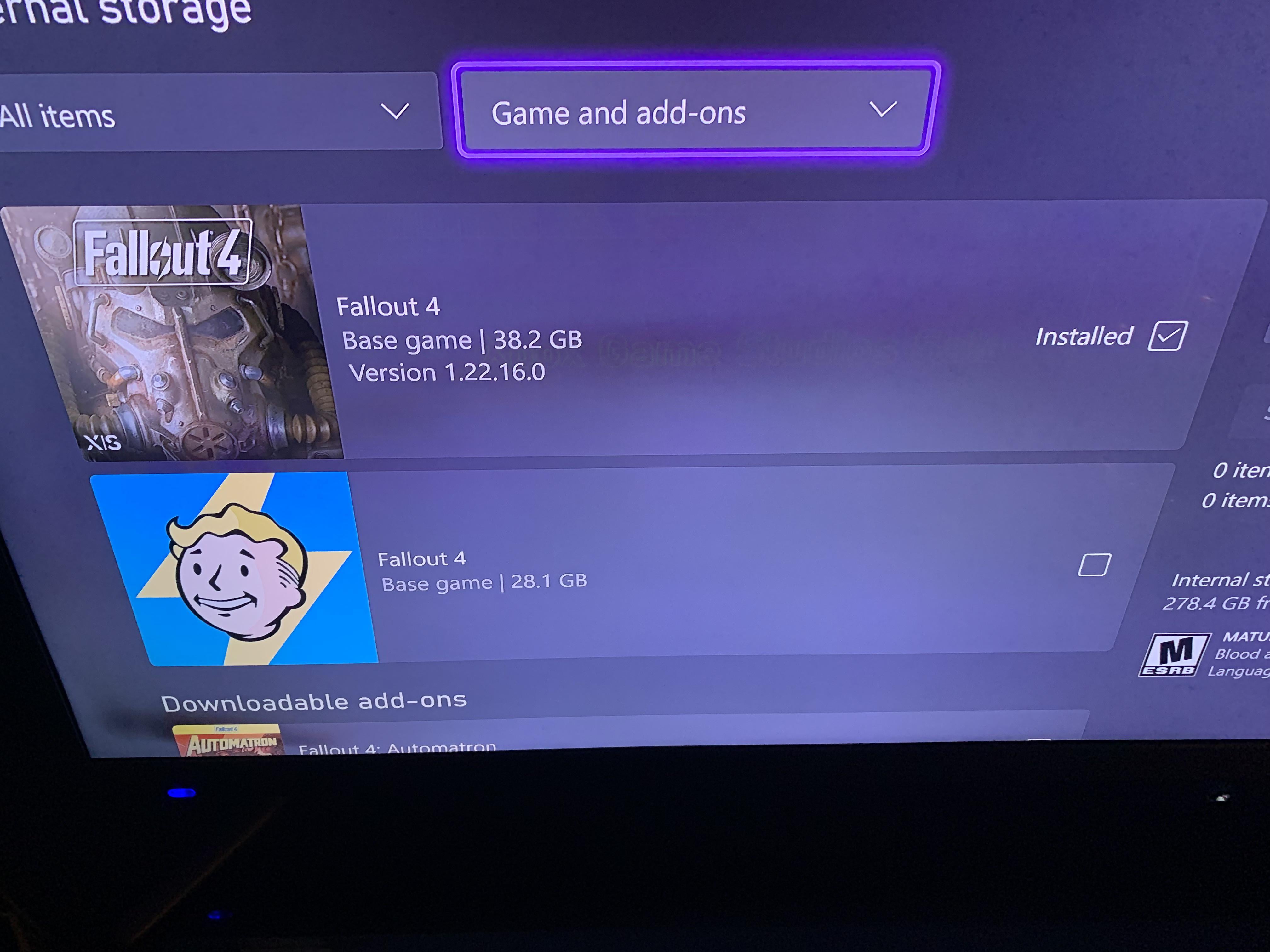 OreoMoo on May 14, 2024 1:04 am I had such a heinous time updating it to the series x version. Eventually I just deleted everything connected to Fallout 4 and downloaded everything new. It still gave me some issues even after that.