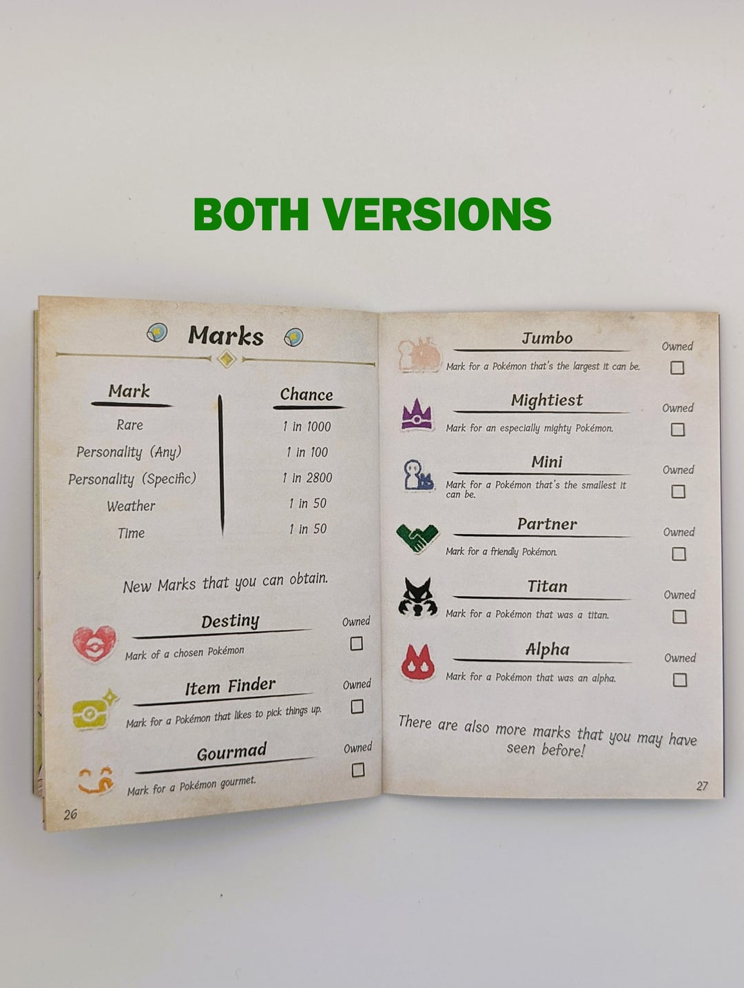 I took inspiration from the old in-game books, as well as the aspect of old Pokémon manuals being hand written guides, and hinted the writing styles and picture aspects like I did for Pokémon legends. Having it as a variation from one another, similar to the games itself.
