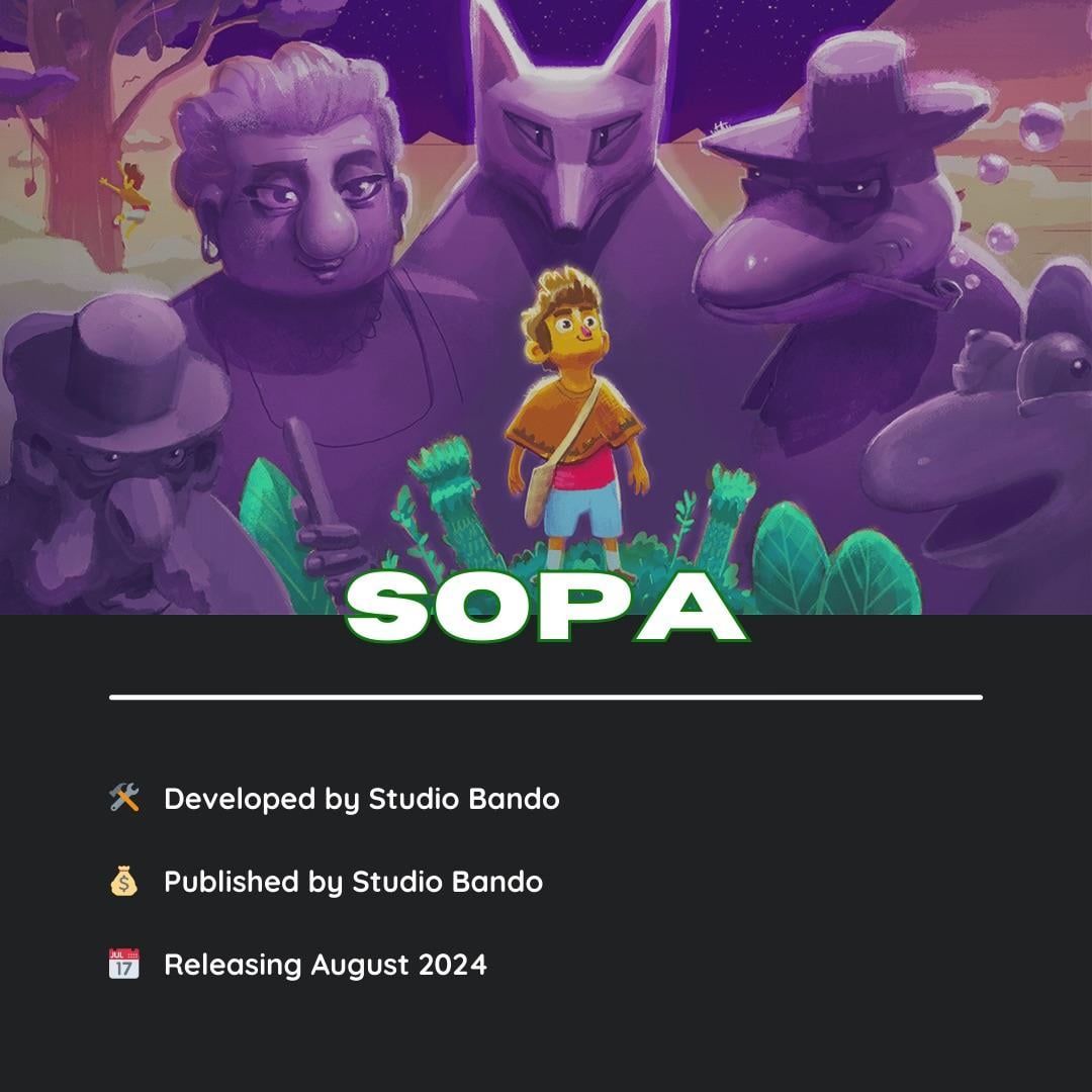 SOPA: Tale of the Stolen Potato – At CCXP '23, Studio Bando revealed SOPA; a narrative adventure game inspired by movies such as Coco and The Little Prince. Supported by ID@Xbox, the team recently confirmed an August release date for the game, but haven't yet given an exact date. Coming to Xbox Series X|S, Xbox One and PC. The game will be available day one in Game Pass. [Trailer]