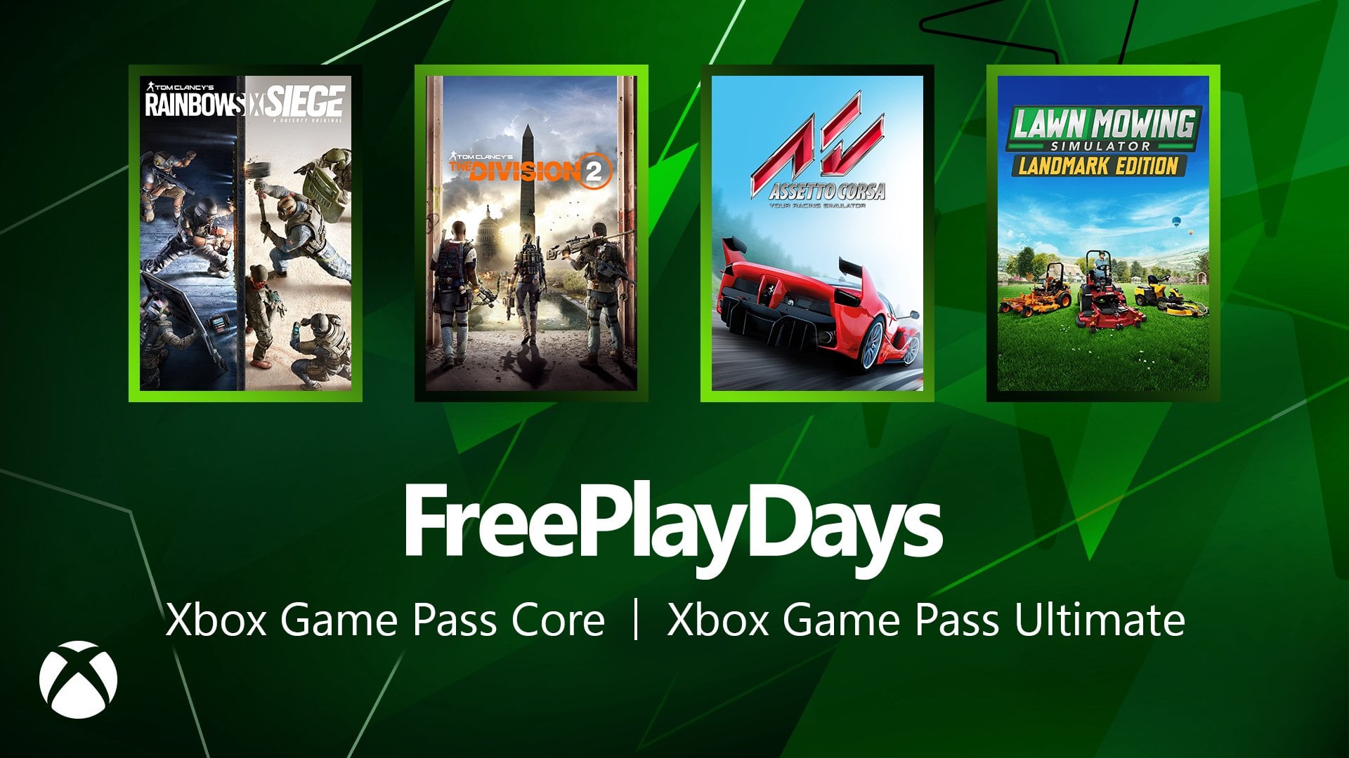 Free Play Days – Rainbow Six Siege, The Division 2, Assetto Corsa and Lawn Mowing Simulator Posted by Xbox-Moderator