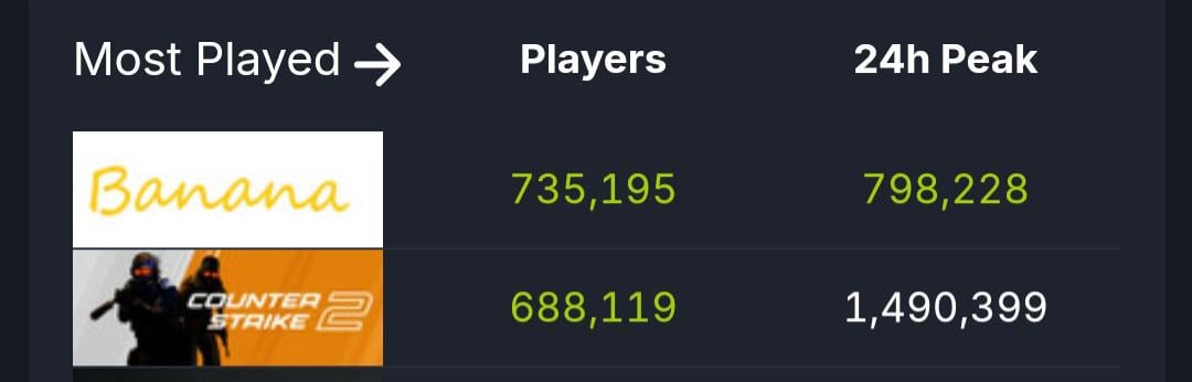Banana is now top 1 in steam, being the game with most players