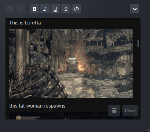 Is there a limit to how many screencaps you can put in steam notes? I think have reached that limit and now whatever I paste here gets removed. This is my Dark Souls 3 log and its pretty long and has many screenshots.