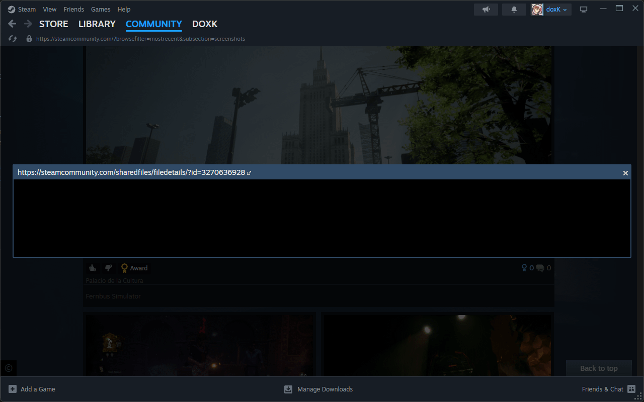 When clicking on screenshots in community tab they always load to black bar. How do I resolve? Posted by Efficient-Tap5585