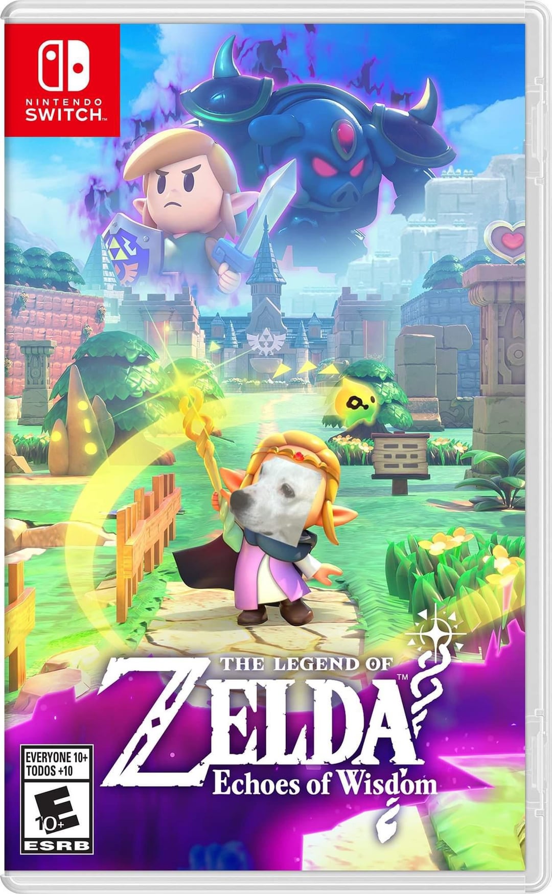 When I saw the cover for The Legend of Zelda: Echoes of Wisdom, I *had* to replace Princess Zelda’s face with the face of Zelda (my sister’s dog). 🐶 💖 She’s our princess. 👑 My sister and I both grew up on Nintendo and still love it today. ✌️ I’ve included a regular picture of Zelda as well. 🌸