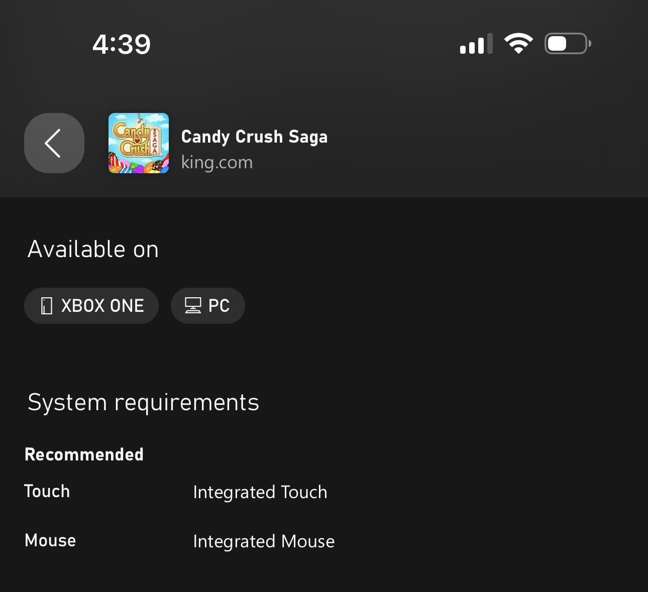 Browsing through my library of owned games in the Xbox app I saw that Candy Crush appears as Owned and it says available on Xbox One and PC, I don’t remember ever playing CC in any device other than my iPhone more than a decade ago, so this is quite interesting.