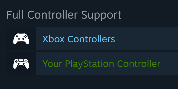 Steam Controller Support Information Why is it that in the store on the game page, whether on a PC or on a phone, in the controller support section it is written in green text “your PlayStation controllers”, while about the Xbox it is simply written “Xbox controller” in the usual blue color. I don’t