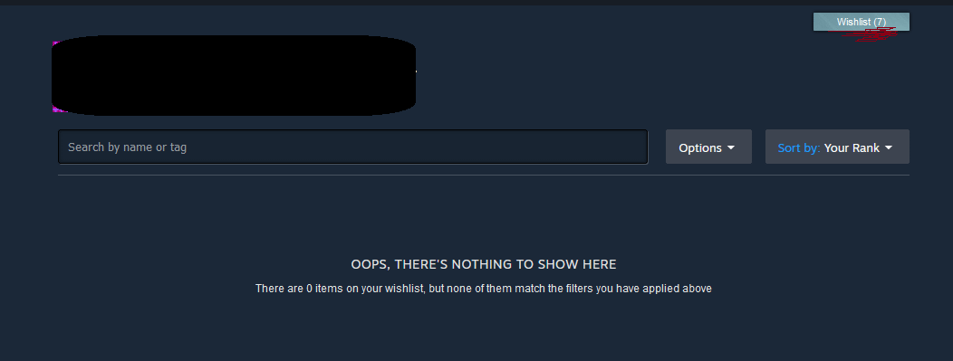 I have nothing on my wishlist but steam thinks that there are 7 items there