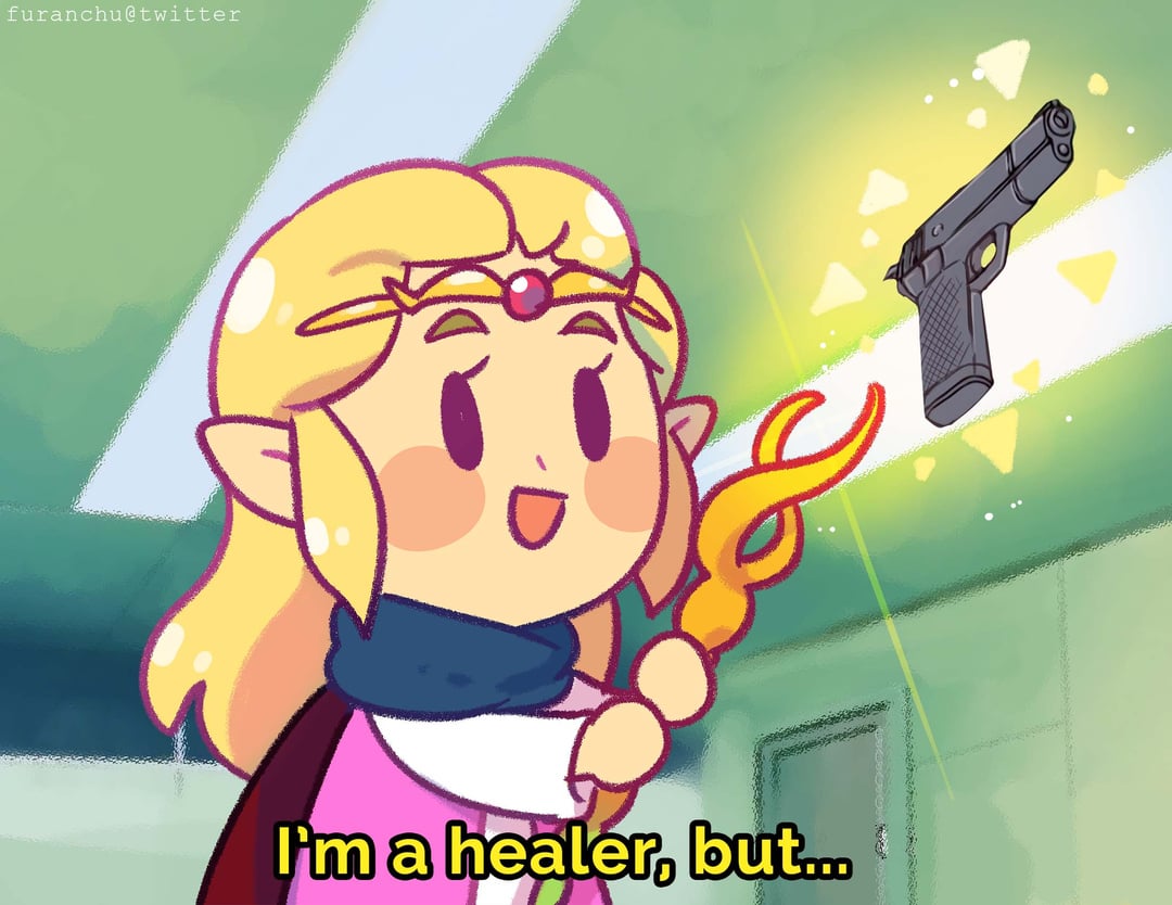 Furanchu and Greeg had the same idea of Zelda from Echoes of Wisdom using the Triforce of Wisdom to use guns against the enemies Posted by CapAccomplished8072