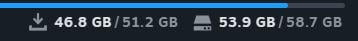 1. Left is download size, right is disk size. When you download a game you still have to unzip/write new files from scratch