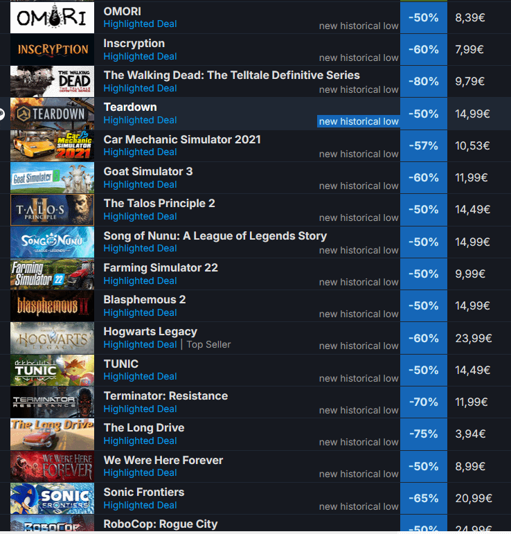 So much hyped nonsense. Around 240 games that no one cares about are a couple cents cheaper than during the regular “sales” that come and go every couple weeks.