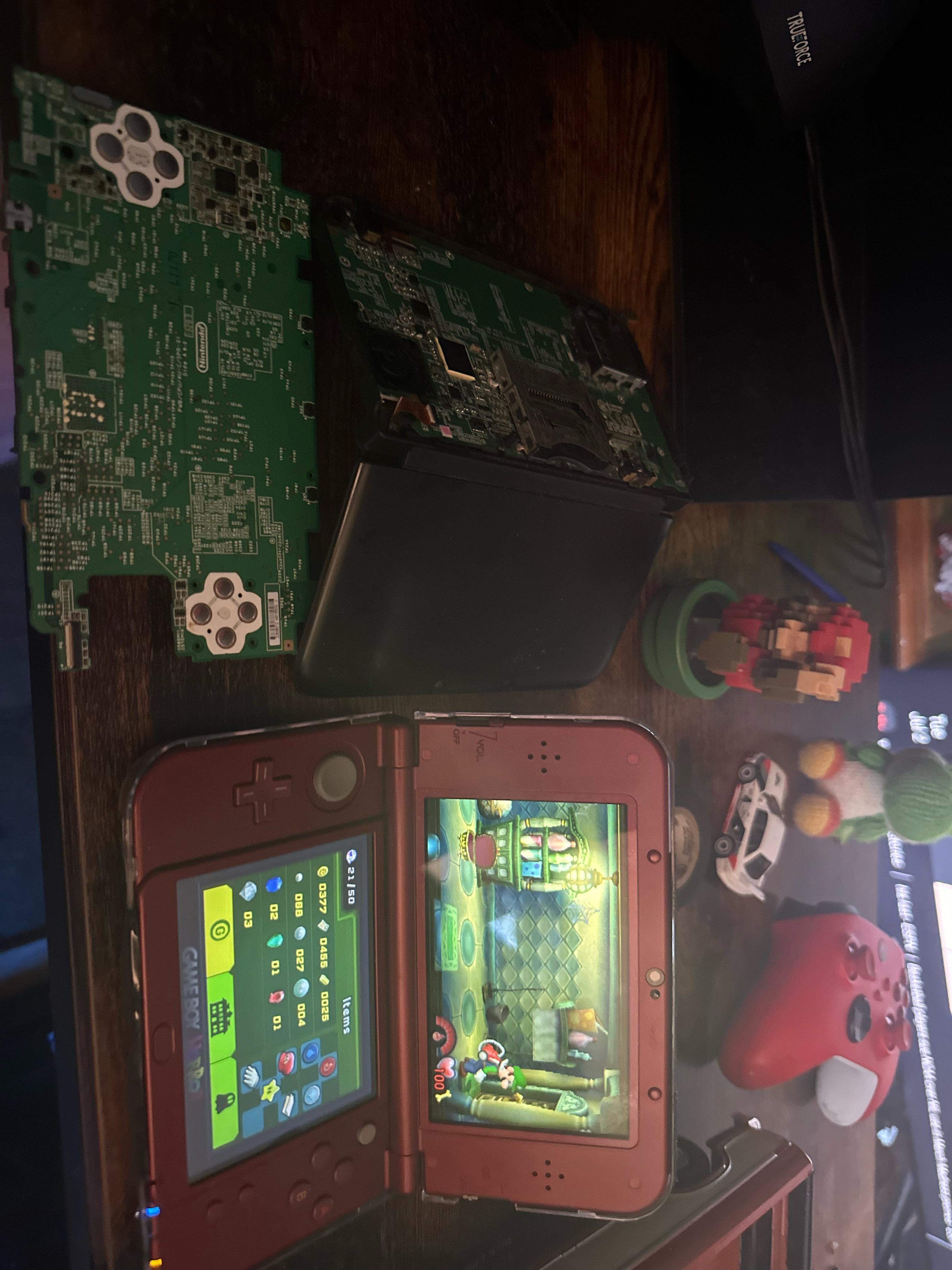 OG Post The left one is my brother’s O3DSXL. I broke it. Bottom screen. The middle one is my O3DSXL. I broke it. Top screen. I wanted to combine them and give it back to him. Years ago. I can’t find anything but the motherboard now. Posted by Firelamakar