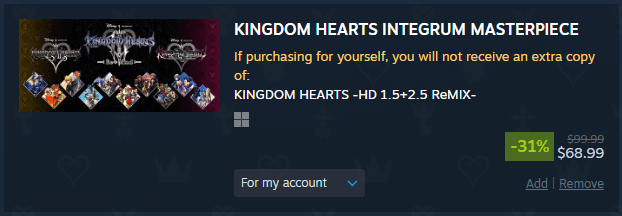 The Kingdom Hearts Integrum Masterpiece bundle isn’t cheaper if you own one part of it Posted by TSLPrescott