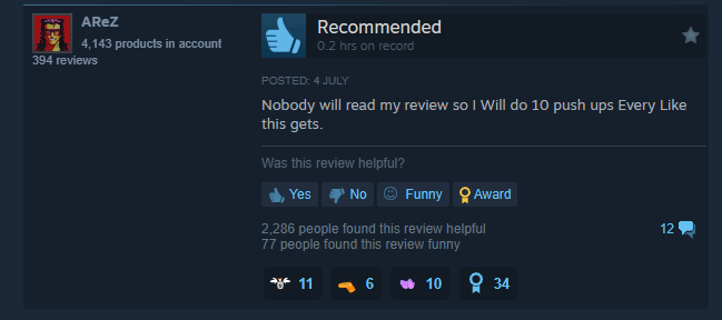 A bunch of people memeing in positive reviews most likely means the game is fun anyways.