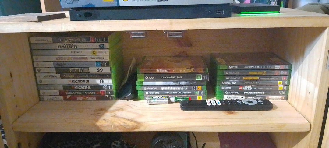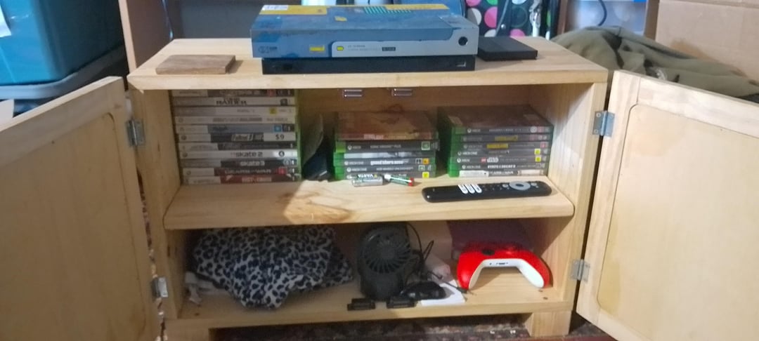 The cabinet below my console I made that in year 10 in high school it was a project I thought I should do to keep all my physical games. Posted by Vegetable-Way-5766