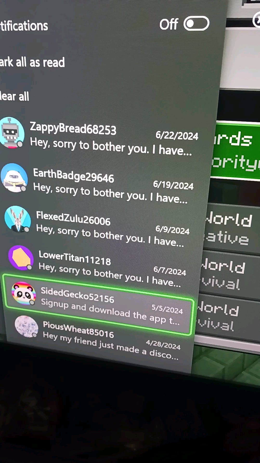 "Hey sorry to bother you. I have an extra $15 Xbox code that I don't need if you want it. I can send it to you if you download the app temu(an app with a history of Chinese spyware and info theft)create an account, and then in the search bar in the app type in acs+ 6 random numbers"