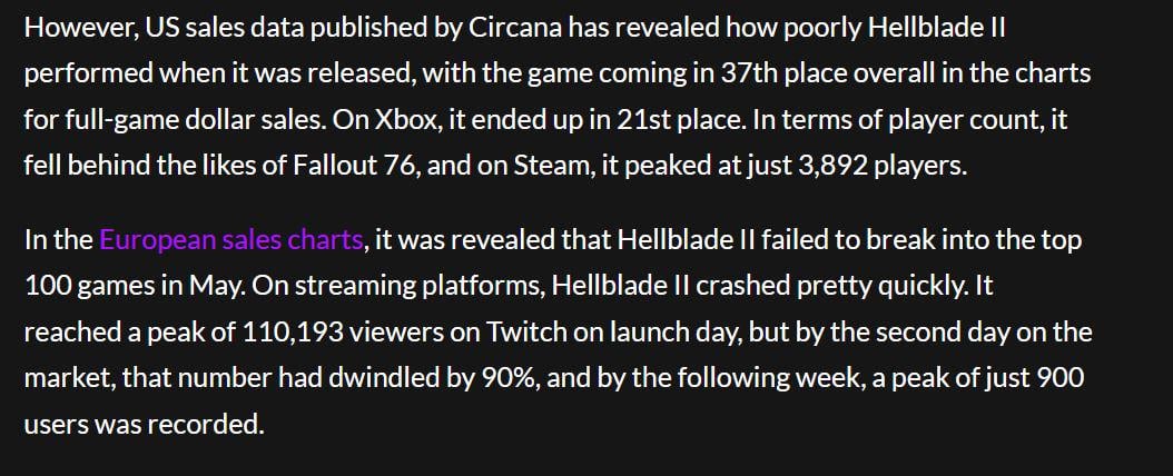 Despite Coming Out In A Slow Month For Releases Hellblade 2 Apparently Flopped Posted by Standard-Recipe-2002