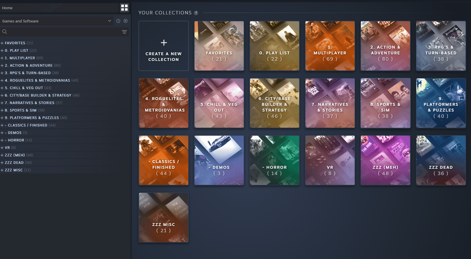 I only have 2 categories. Games I have played\finished and ‘Play next’ which is just the backlog