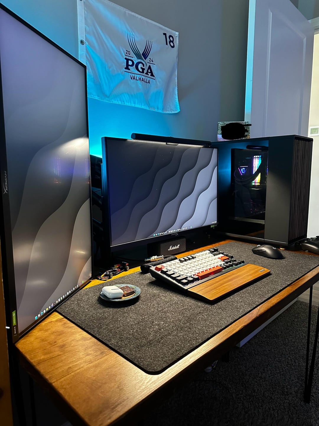 Gotta show some love for the flag. Golf, Mechanical Keyboard, and nice battlestation. Respect.