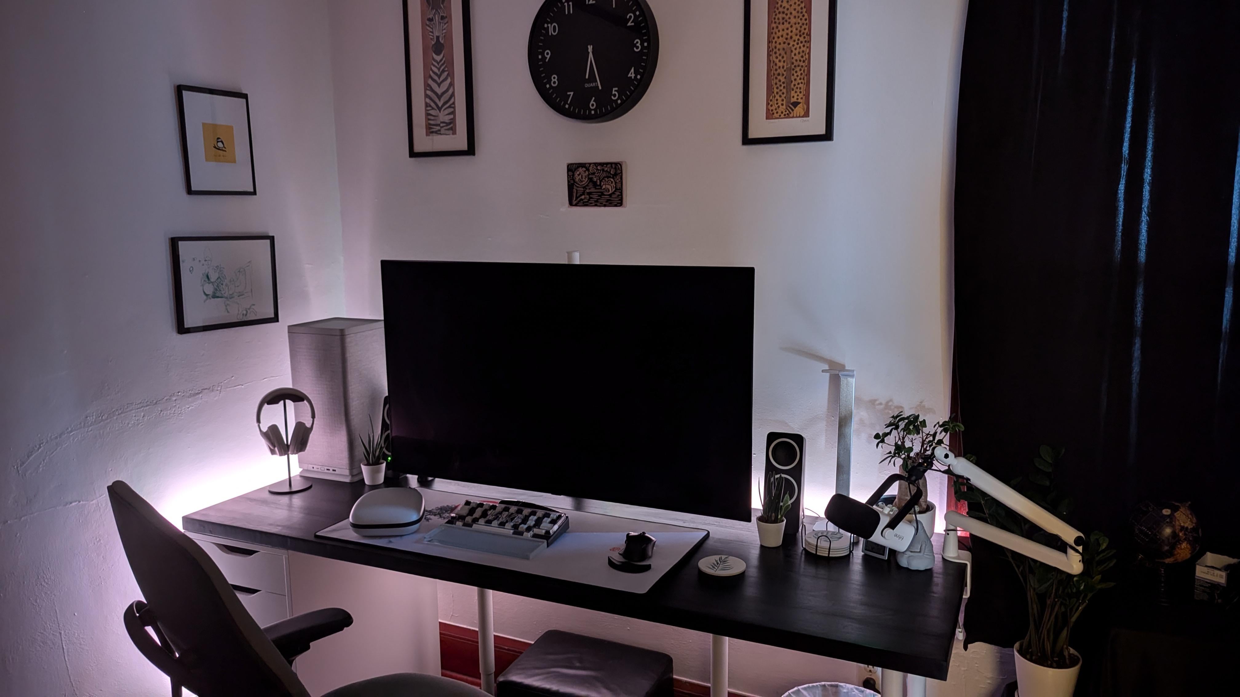 Decided to stain my desktop black and lean into the contrast. I dig it.