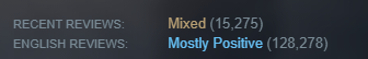 For example, there have been some games recently with poor chinese localisation, e.g. silksong, that would drag down the score shown to other users as well despite it being an issue that would not affect them at all.