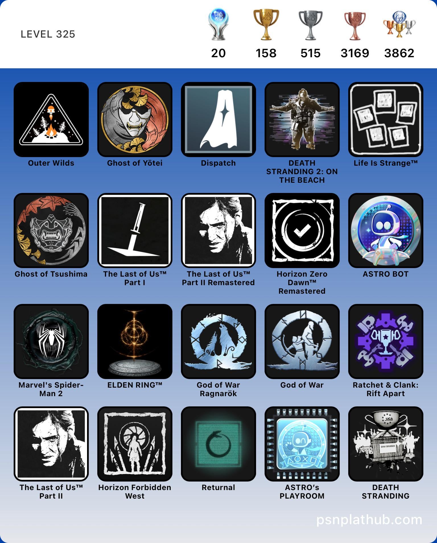 Gotta respect the Ragnarok and Ghost platinum trophies, those are some of the most time-consuming, mind numbing ones I’ve seen, I literally gave up on them so I wouldn’t walk out of those games hating them for it. All the others ones are pretty fun, especially Returnal’s!