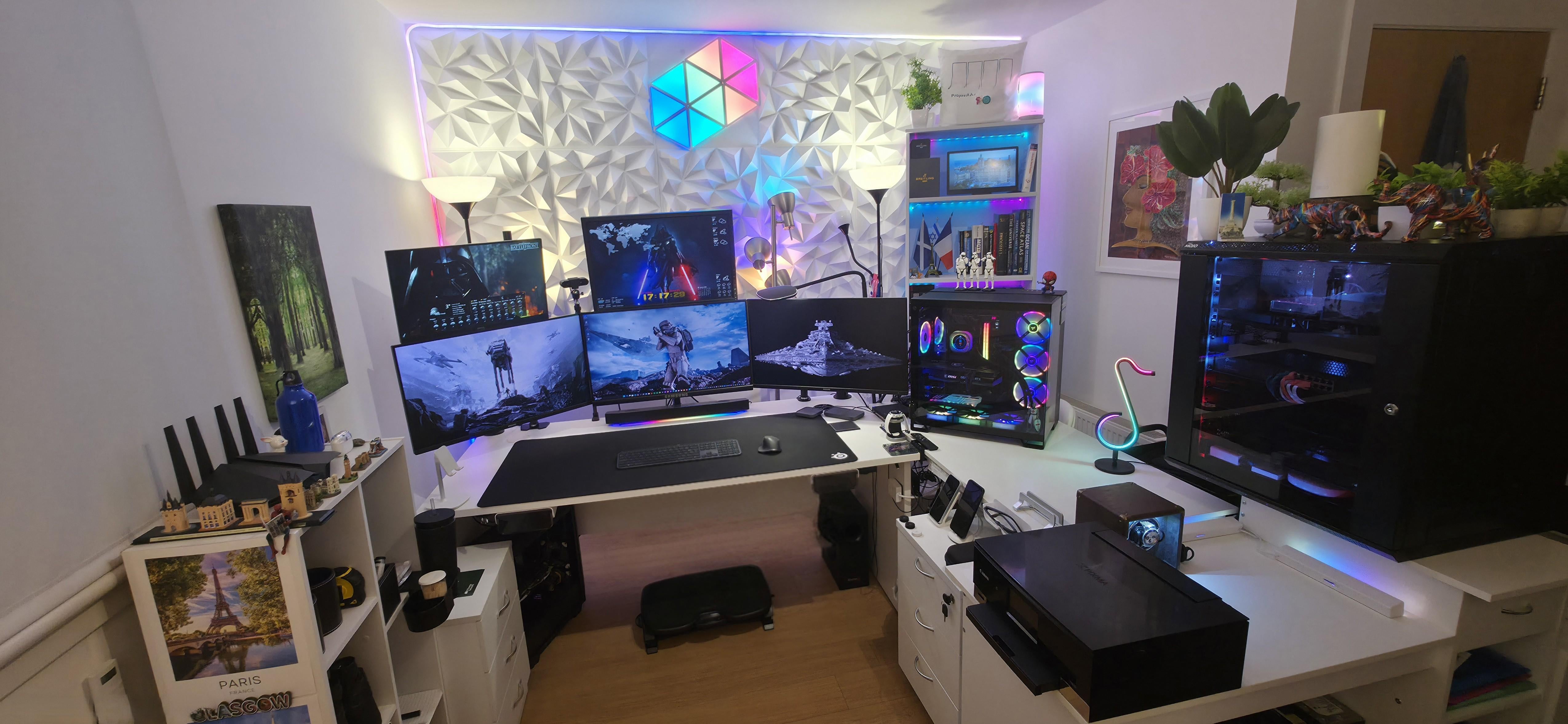 5. Personally I’d get rid of the 5 monitors and get one ultrawide and then ditch all of the RGB (literally all of it) and get some more natural decor (wood, plants, etc.) so it looked more like an adult space.