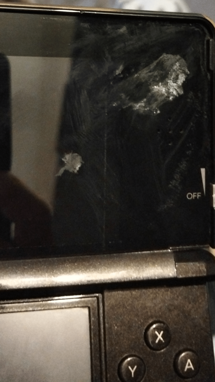 Help! I was going to glue the rubber cap of my Nintendo 3DS back on with superglue, and when I opened the superglue it splattered all over the screen. I had toilet paper handy and I wet it as fast as I could.I put it back where it fell and now it’s stuck like this. I need help fixing it.