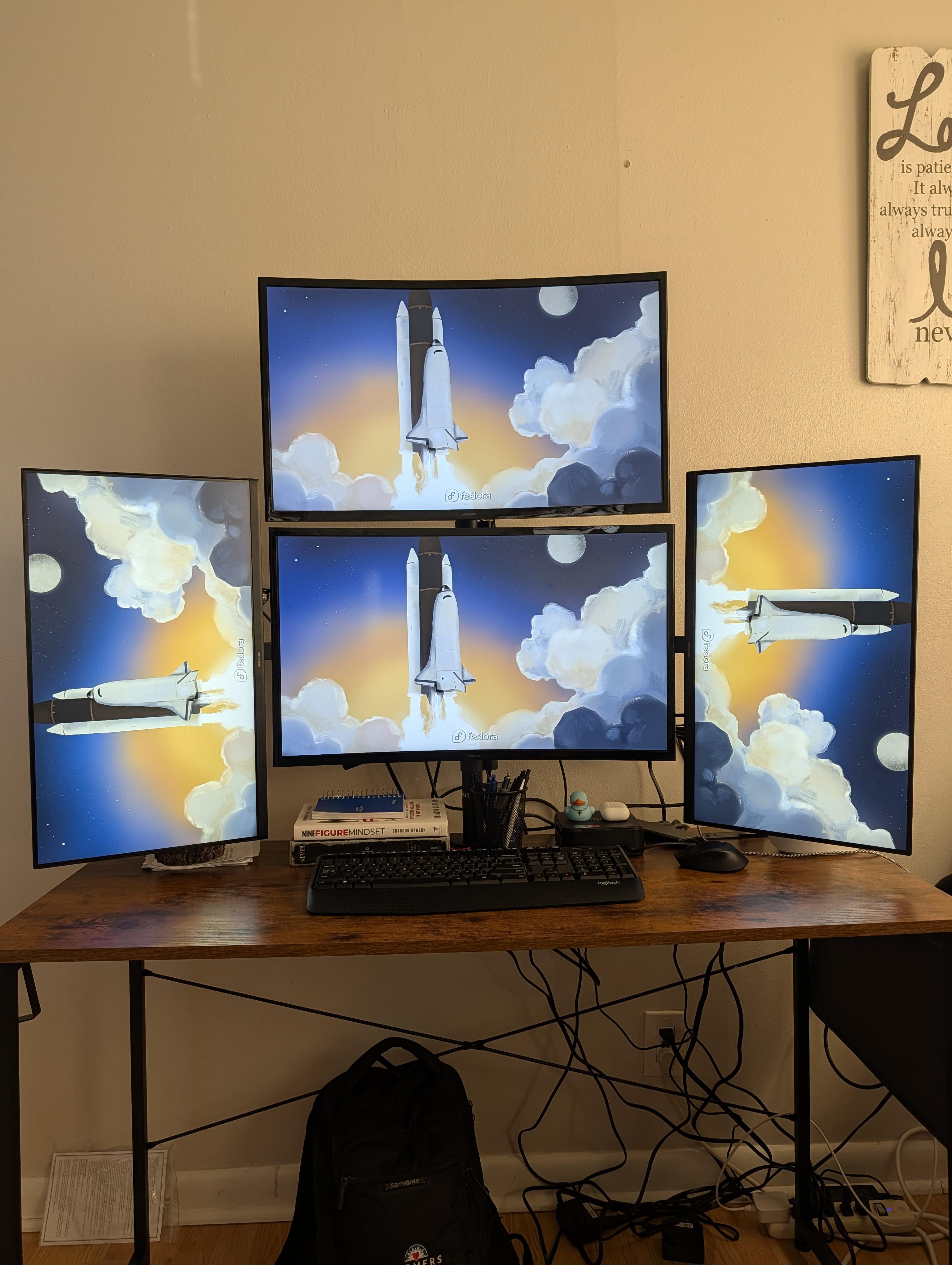 Just bought this Mount and recently switched to Linux. Any recommendations on how I can make it better? I definitely need a bigger desk and better cable management but anything else I really appreciate.