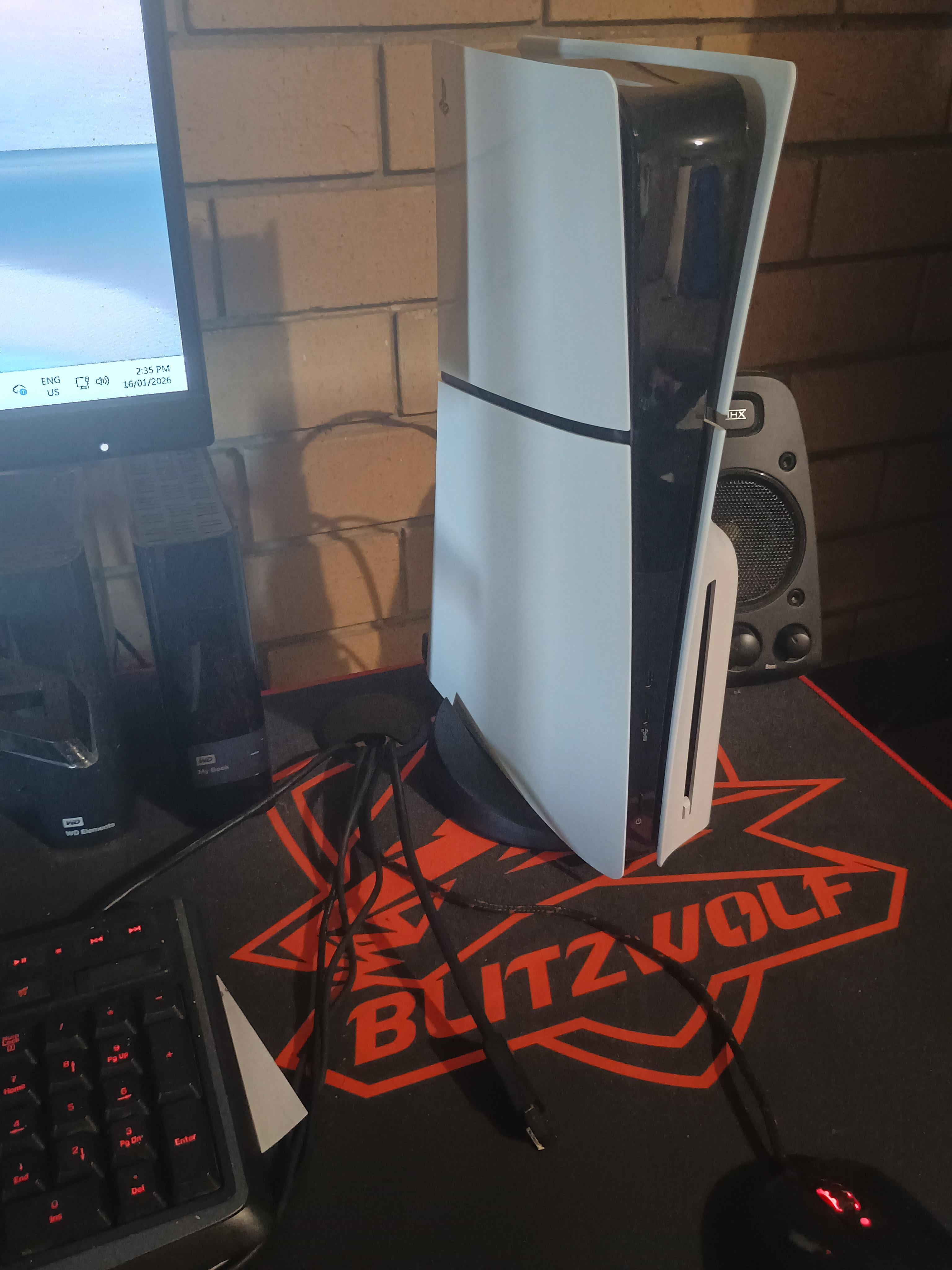 I just moved my ps5 slim onto my desk to use my G29 wheel. It was previously horizontal in a cabinet. Is it ok to have it vertical on the original PS5's stand? There are some small gaps but it's stable. I don't want to buy the new stand unless I have to