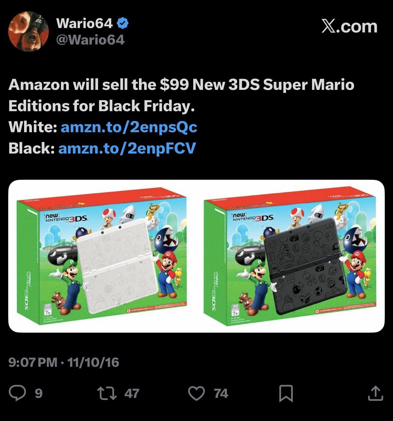 I remember not being able to get it on Black Friday but a month or two later Amazon had left over stock they dropped on a random day and wario64 once again saved the day. Posted by trip6god
