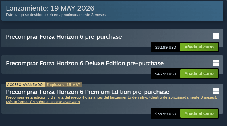 * Early Access titles will similarly also offer a discounted price that will increase upon the actual 1.0 release. This isn’t really a pre-order but unlike the previous example is an actual price increase.