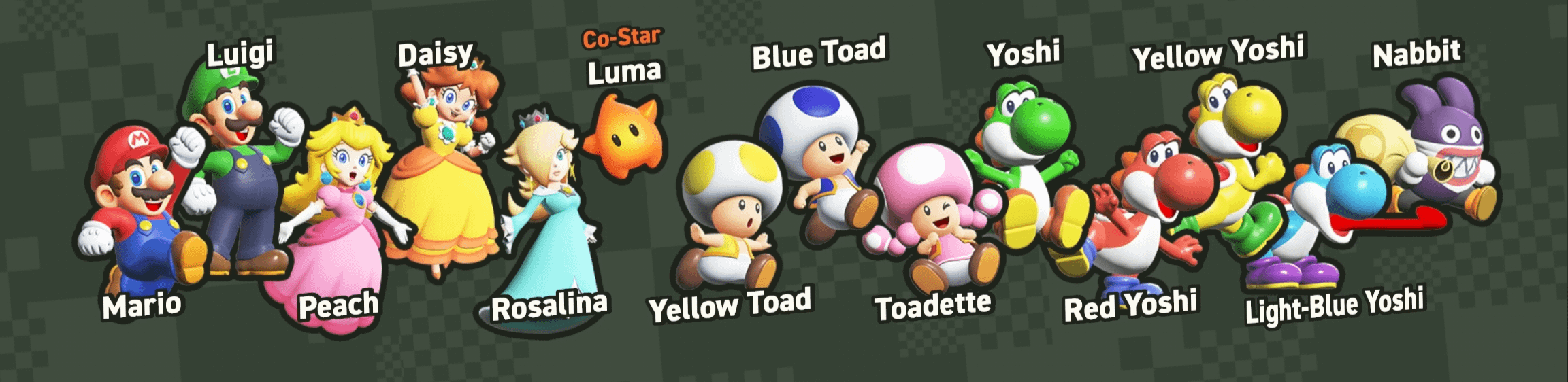 Couldn't find a good image of all of the characters on the character select screen so I got one myself and now we have one. Full image of the Super Mario Bros. Wonder character roster. ♡ Posted by Layman_Ahoy