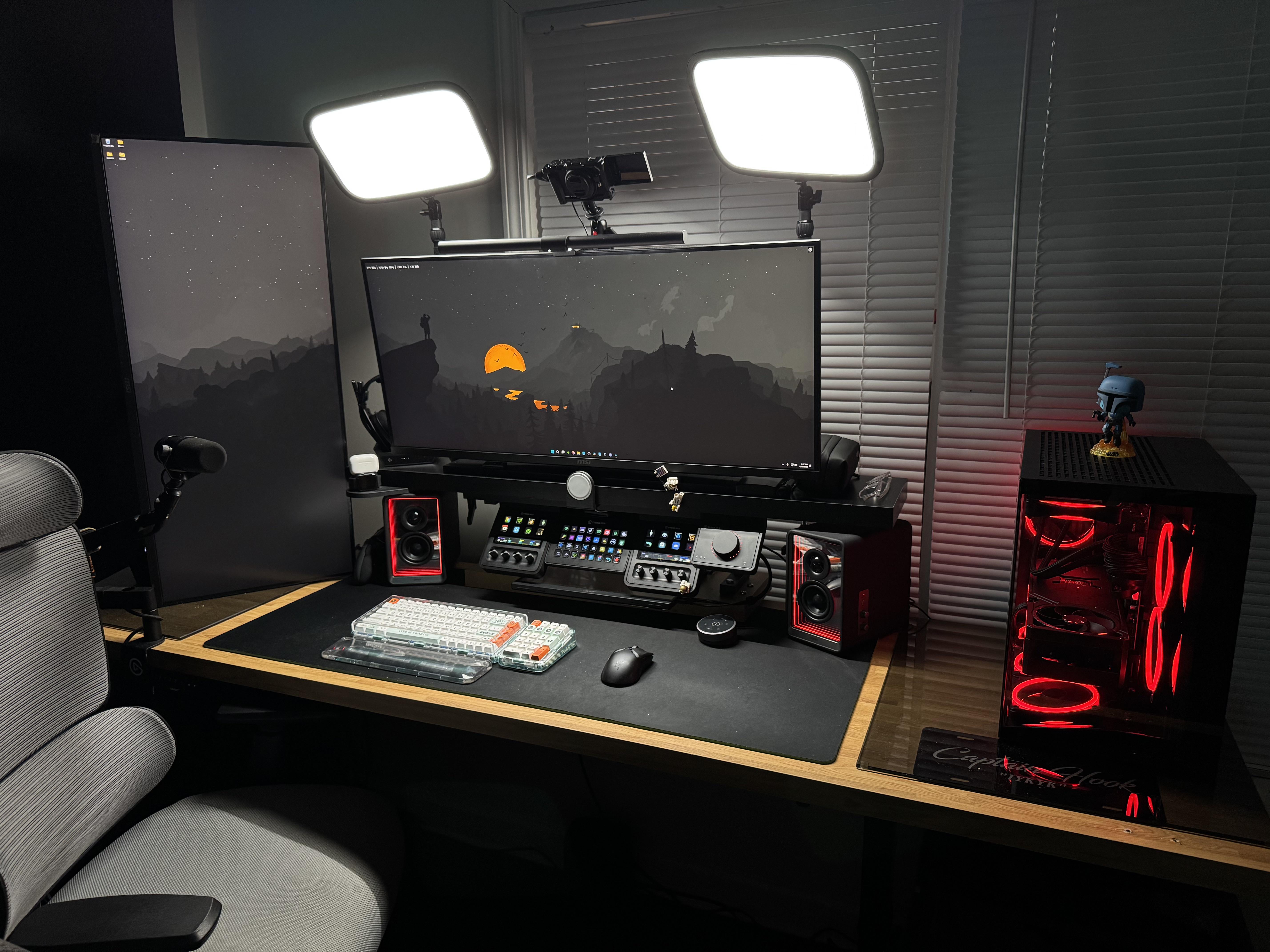 1. Are those two glass mousepads on both sides ? Under the PC and under the left vertical monitor?