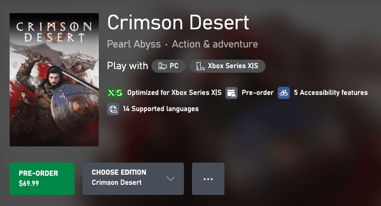 Crimson Desert on Xbox will include the PC version (no Xbox Play Anywhere tag yet)