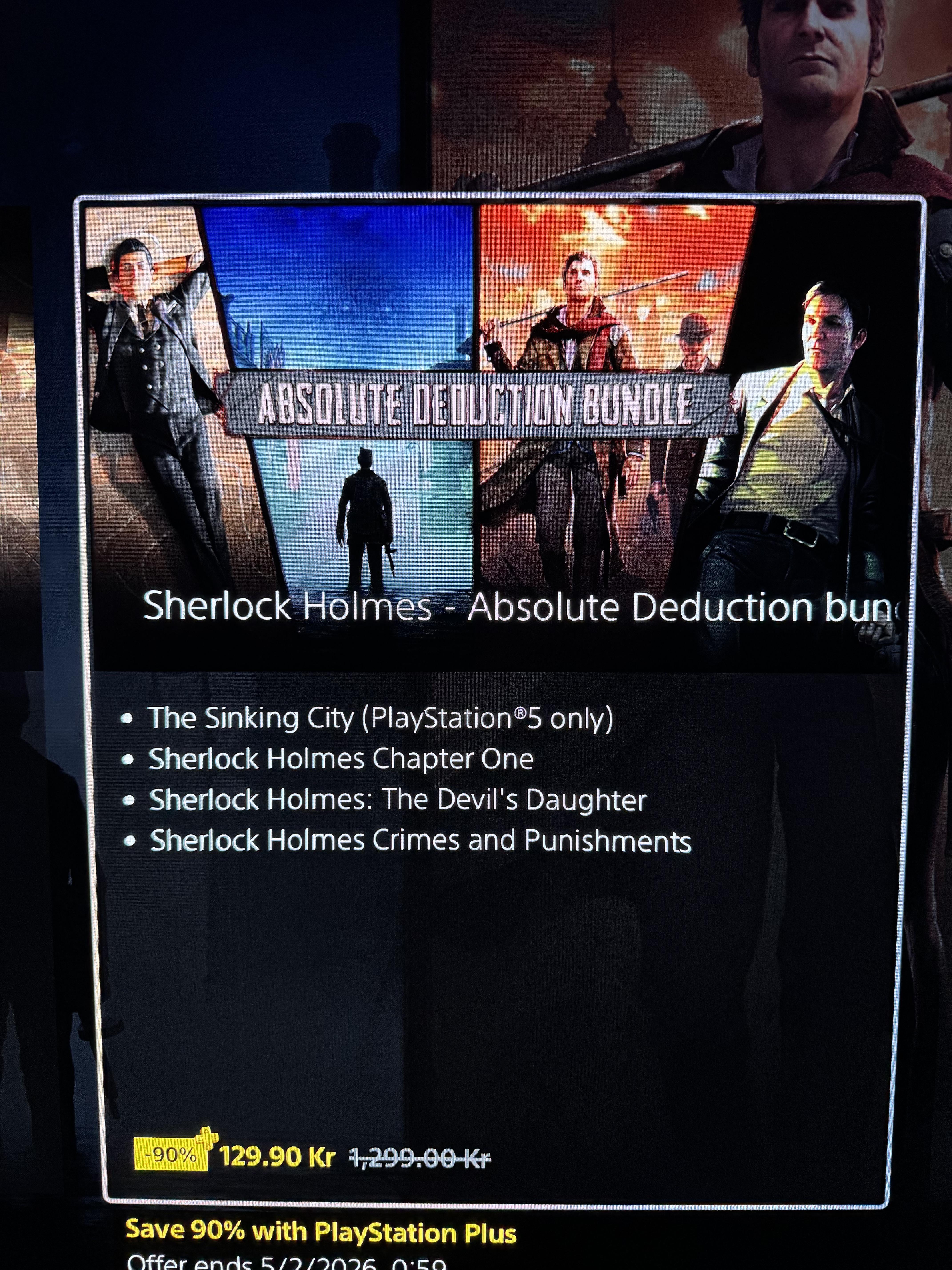 129kr is a steal imo. I love the Sherlock Holmes games. If you’re in to finding clues and putting clues together and all that, the bundle is worth it just for the Sherlock games. Can’t speak for The Sinking City as i have not played it. But The Devils Daughter and Crimes and Punishments are two games i really love. Although they have a certain jank to them haha