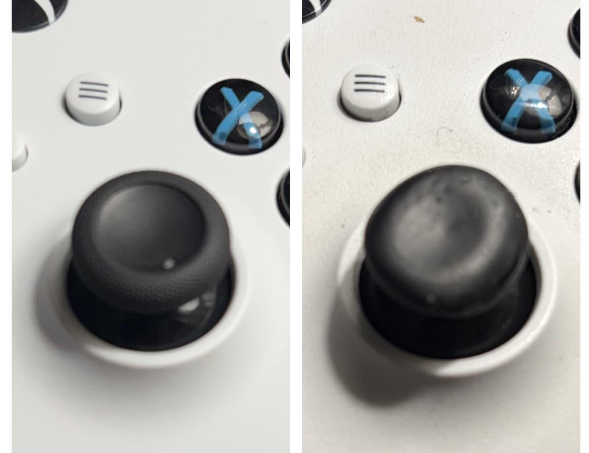 Joystick on the left is from a new controller. The one on the right has seen close to 1500 hours. Posted by ImJacksAwkwardBoner