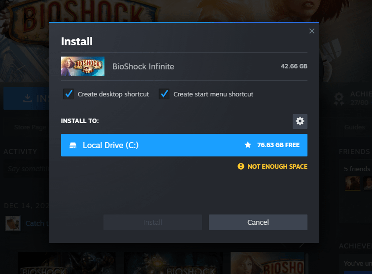 1. You need enough space to download and install, as mentioned, twice the space as the game needs for install. Once the game installs the downloaded files will be (or should be) removed.