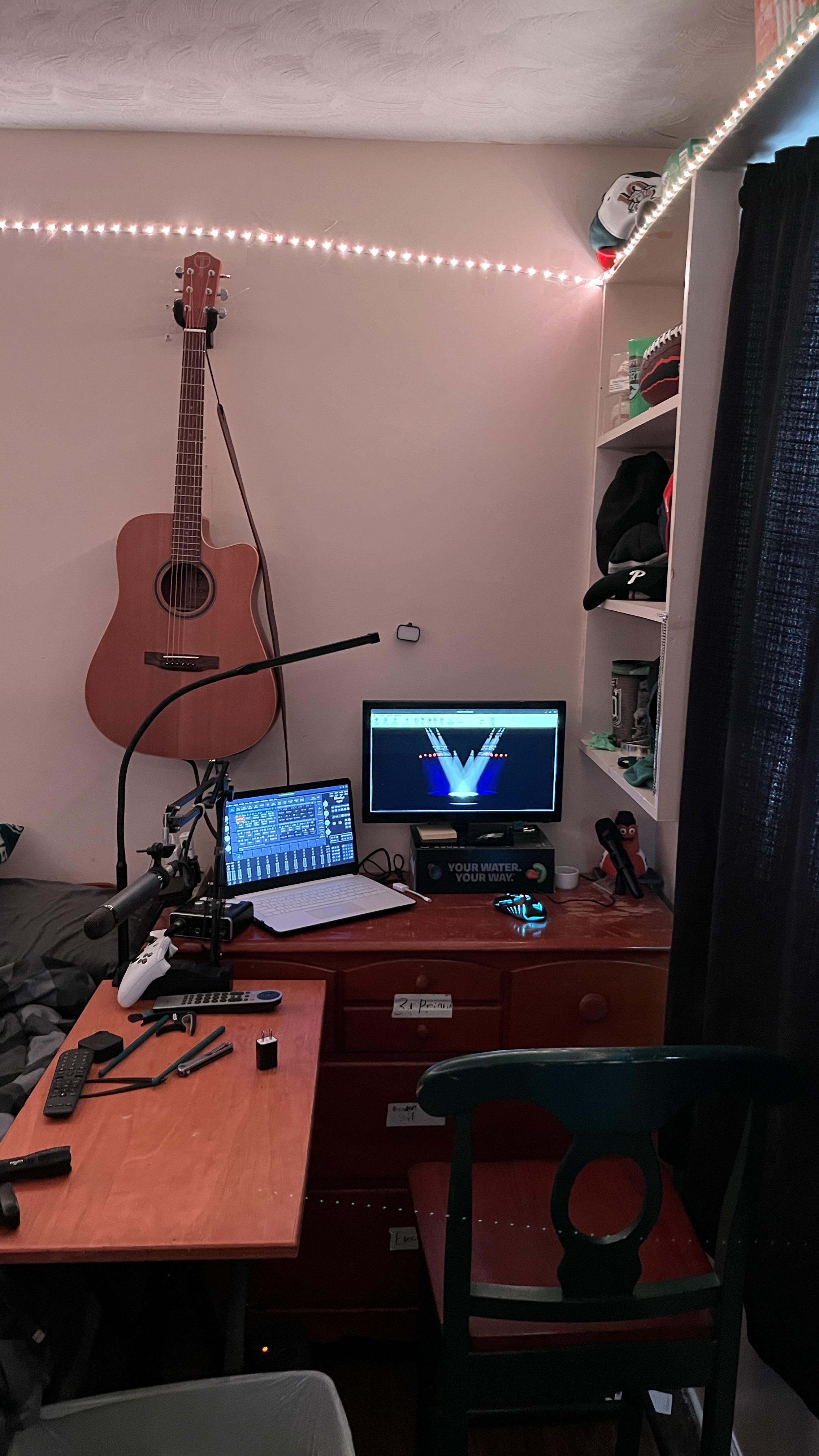 I don’t really game with this stuff (Xbox is on the TV). This is my computer setup which mainly is for MagicQ (open in the pic) and/or Reaper (for making music on piano/guitar). Posted by Seamo_Bojamo