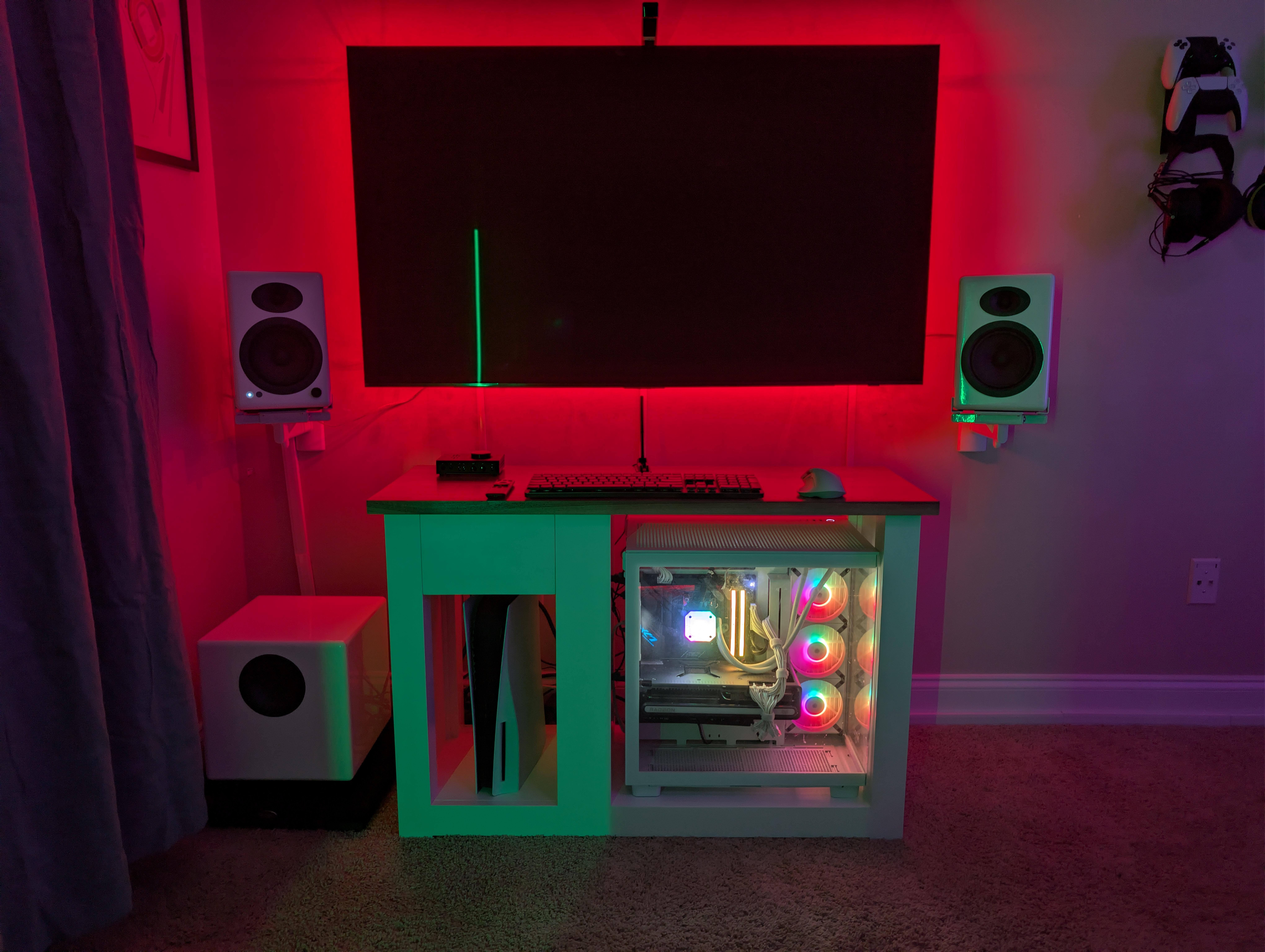 I used a controller for all my games anyway. Tired of sitting up close to a monitor. The furniture I had custom built to house my PC and PS5. 4in air gap between PC and console for cables and airflow. Mouse and keyboard are wireless.