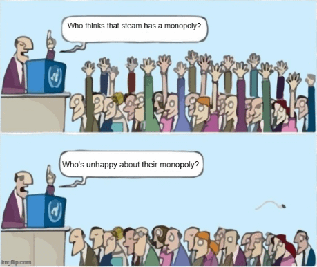 3. Steam isn’t a monopoly though? They have done basically nothing to try and discredit, destroy or buy out competitors. Hell, Gabe Newell actively encourages competition for PC gaming.