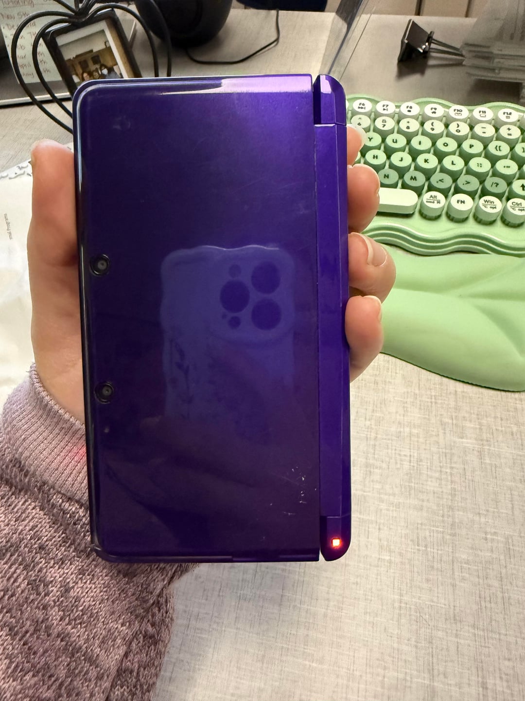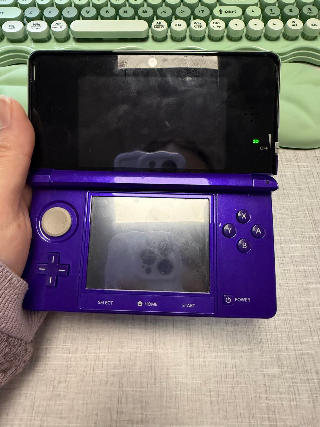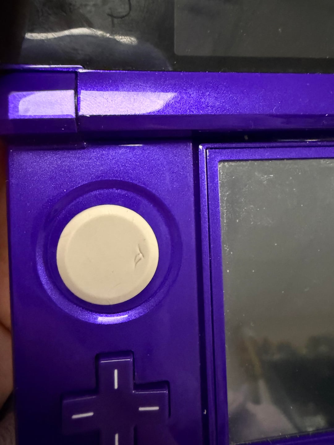 I knew there was a purple color out there and I’ve see maybe 2-3 on sale for over $300 bc it came as a bundle but I didn’t need all the “extra” stuff. So I passed on it. And then this beauty showed up. $200 with two games. They said $150 with no games and we agreed on $130. We met when it was getting dark out at the HEB parking lot. Once we got there I saw how young the young man was. He was driven by his mom and dad. He handed me the 3DS with shaky hands and that’s when I noticed it wasn’t cared for as well as I had hoped. I take care of all of my consoles and forget not everyone is as careful as me. It hurt me seeing the scratches and cracks and the mark on the analog stick. My brain said to try to haggle but seeing the young man stand there nervously shaking I felt bad taking his money away. So I looked at my husband pointed at the imperfections, said I’m sure I can cover it somehow and smiled at the young man and sent him his $130.