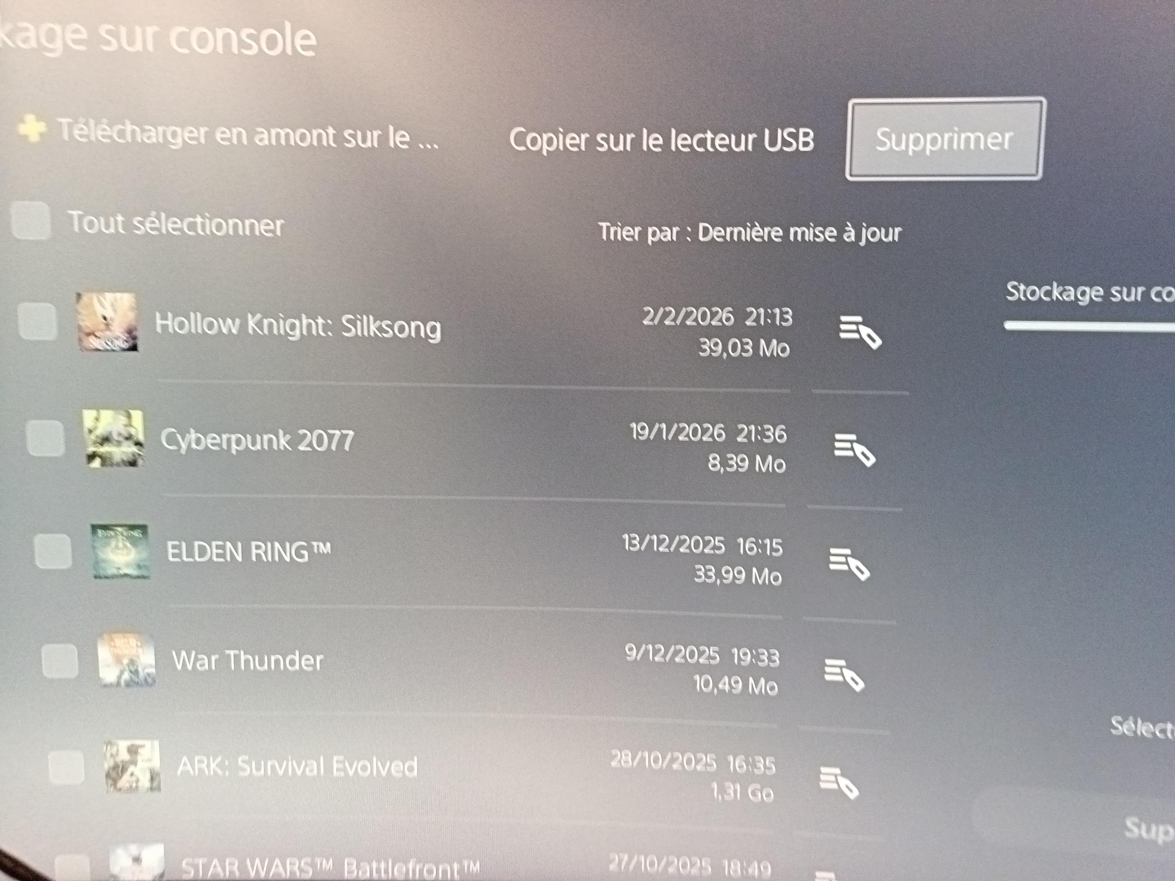 J ai fait un transfert de sauvegarde filaire entre ma play 4 et 5 (play 5 déjà avec mon compte et mon disque dur externe) sauf que je n' ai plus mes sauvegardes sur mes jeux pourtant elles sont bien sûr ma play comme montre la photo.