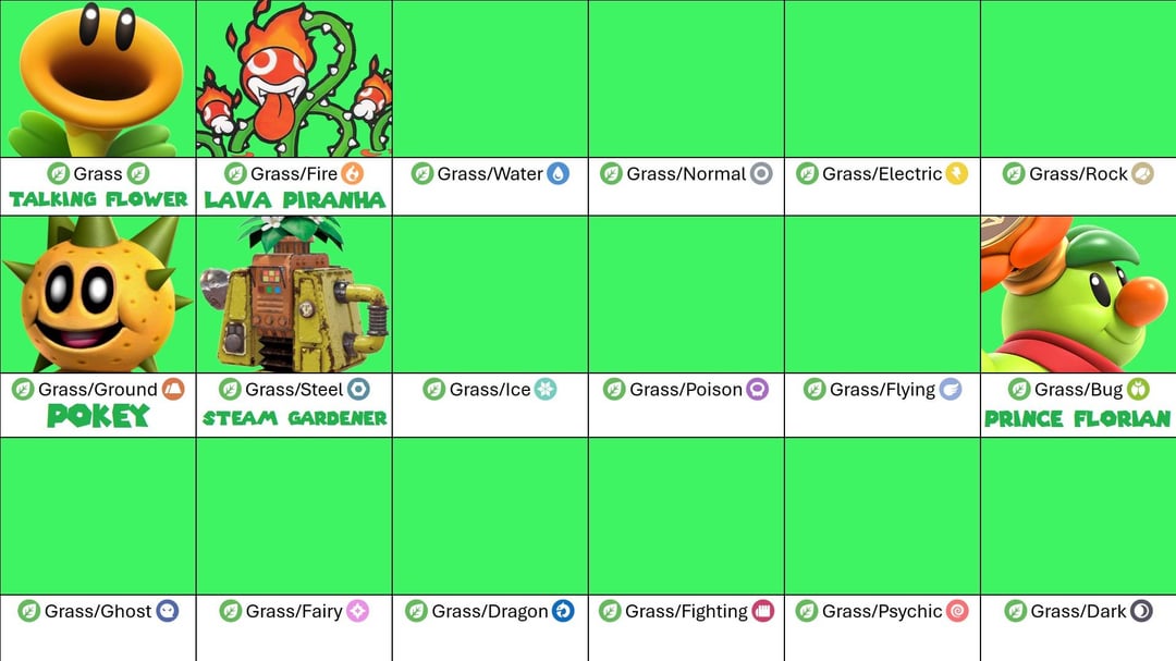 - This chart will ignore primary and secondary typing. For example, Grass/Normal and Normal/Grass are treated the same